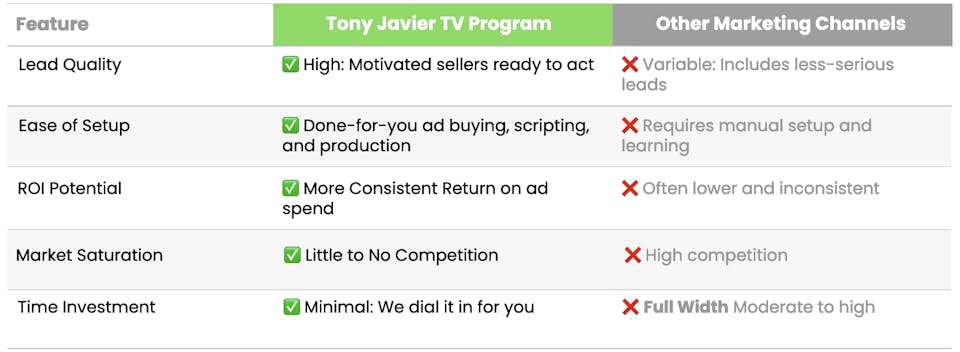 TV elevates your reputation, making deals easier to close. Build trust right off the bat with sellers.